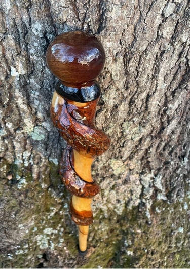 Handcrafted walking sticks and hiking staffs, each one uniquely carved with care and precision. Your journey deserves a companion as remarkable as the path ahead.